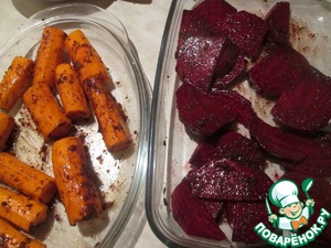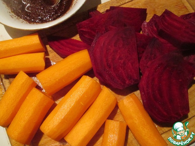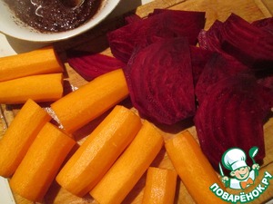 Овощи хорошо помойте, почистите, свеклу нарежьте дольками, морковь - кусочками.