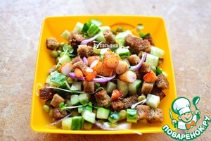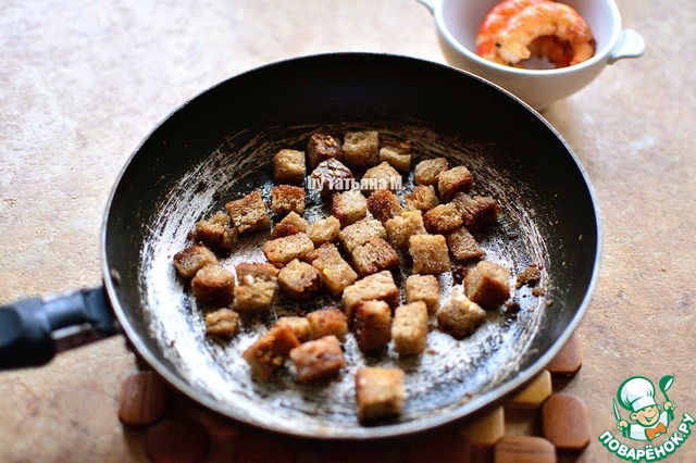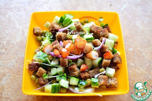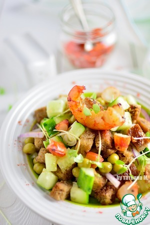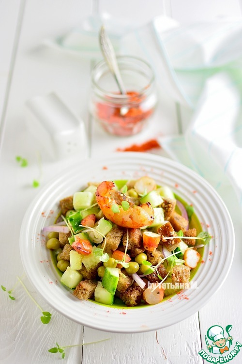 Ингредиенты для «Огуречный салат с креветками и гренками»: