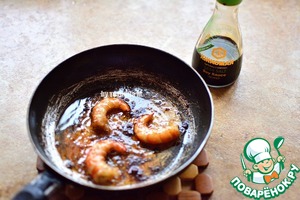 Креветки порезать (если крупные), одну оставить целиком, перемешать;