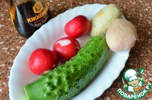 Редис и огурец вымыть, обрезать хвостики. -