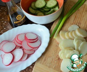 огурцы и редис слегка присолить.