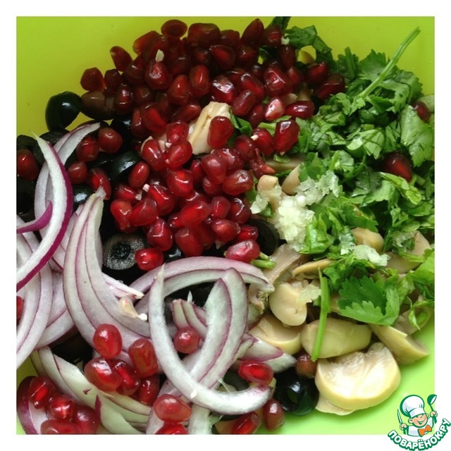 - Маслины (1 банка масса нетто 280 г) — 0,5 бан.