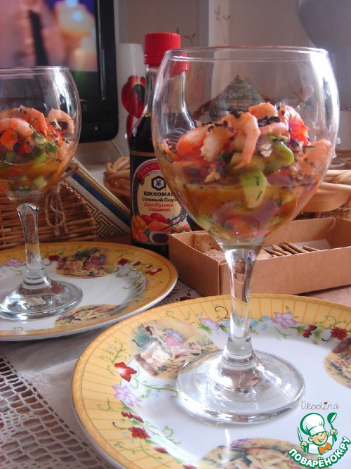 Салат с креветками и авокадо, заправленный пикантной заправкой. Салат можно есть в Пост, когда разрешена рыба. Это 2 праздника-Благовещенье и Вербное воскресенье.