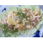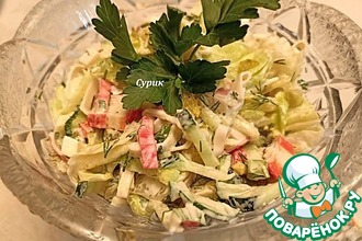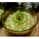 Рубим мелко зелень и тоже- в салатник. Перемешиваем.