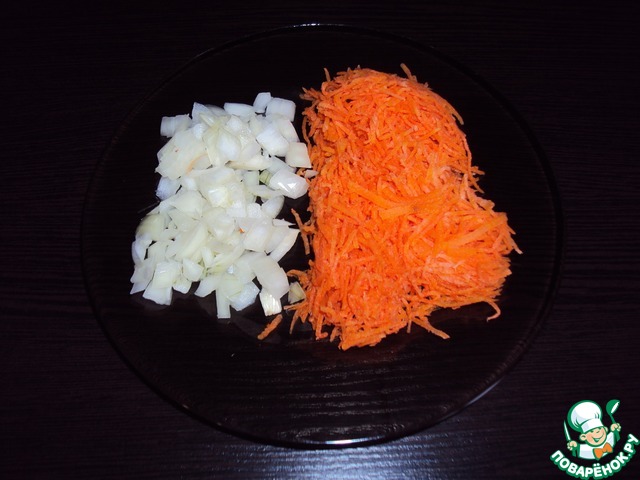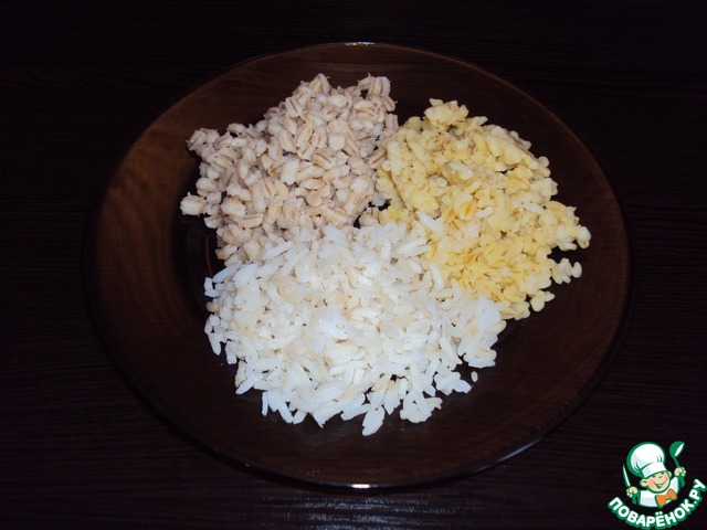 Вот наше дружное трио. Крупу желательно отварить заранее, это значительно ускорит процесс приготовления супа.