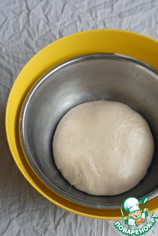 Смешайте и замесите в тесто все ингредиенты — вручную, в миксере, или хлебопечке. Вымешивайте до гладкости. Тесто должно быть мягким, если если оно кажется крутым — дополнительно добавьте столовую ложки или две воды.