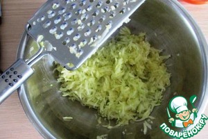 Кабачки отжимаем от сока и отправляем в миску к помидорам с луком.