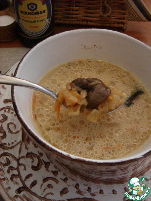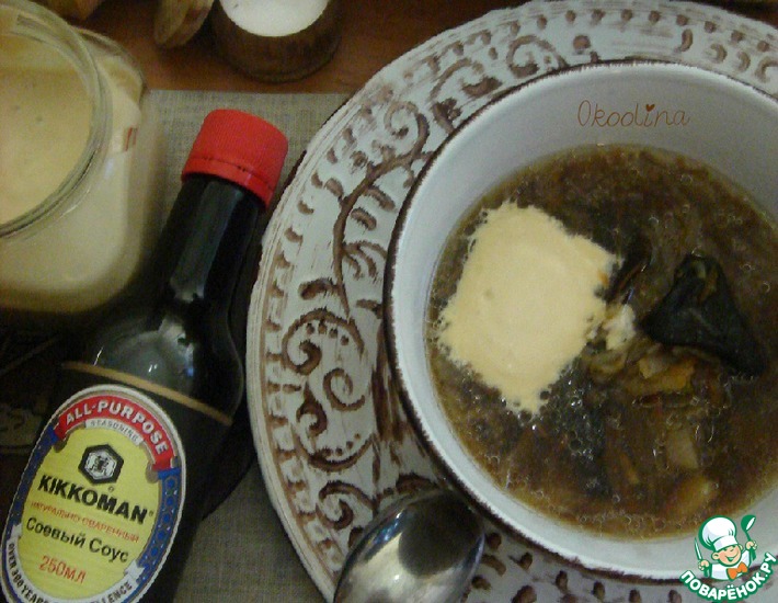 Грибные щи не требуют много ингредиентов, но они вкусны со сметаной. Как известно у на идёт Пост и сметану нельзя. Хочется их всё же побелить. И я придумала такой постный майонез, в состав которого входит соевый соус KIKKOMAN натурально сваренный. Замечательные щи получились! Не оторваться!