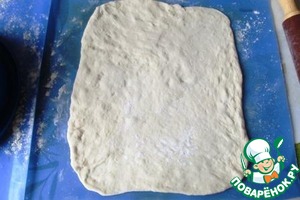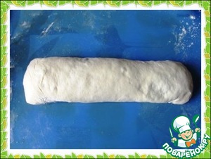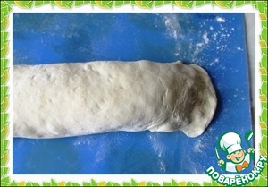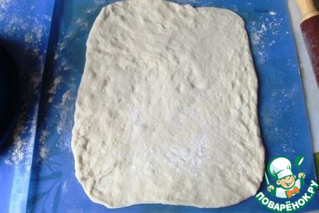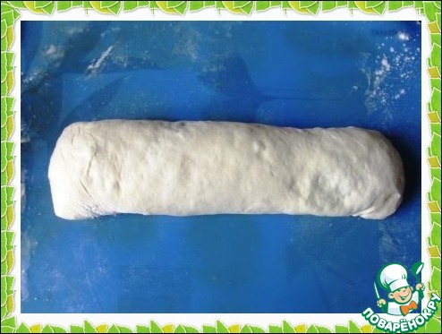 • Подошедшее тесто вываливаю на коврик, слегка присыпанный мукой, и разделяю на две равные части, будет у меня два рулета.
