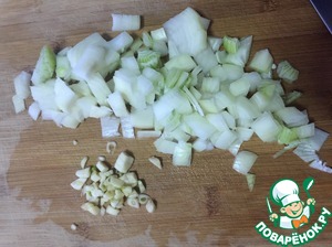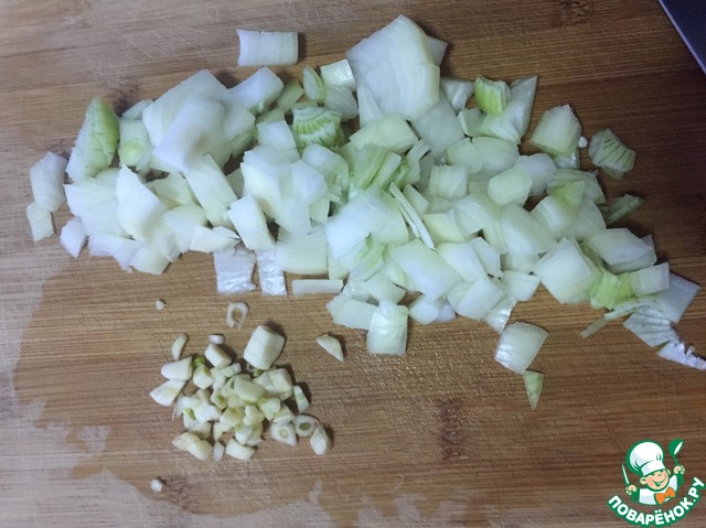 Лук и чеснок мелко порезать