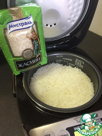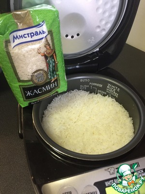 Отдельно отварить рис. Я использовала рис жасмин ТМ "Мистраль".