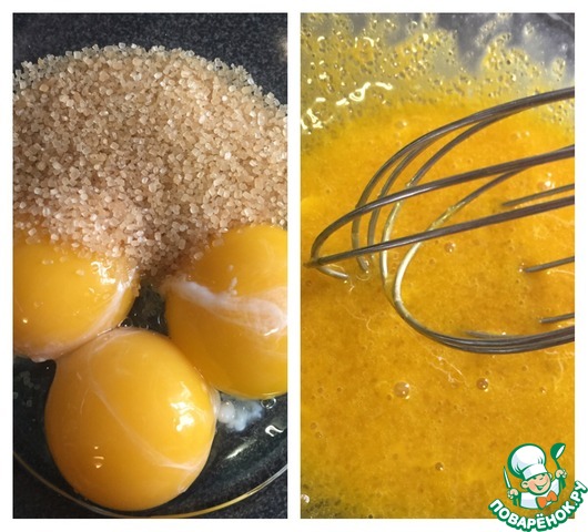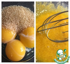 Белки отделяем от желтов и убираем в холодильник. Желтки смешиваем с сахаром. |