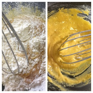Добавляем муку и хорошо перемешиваем. |