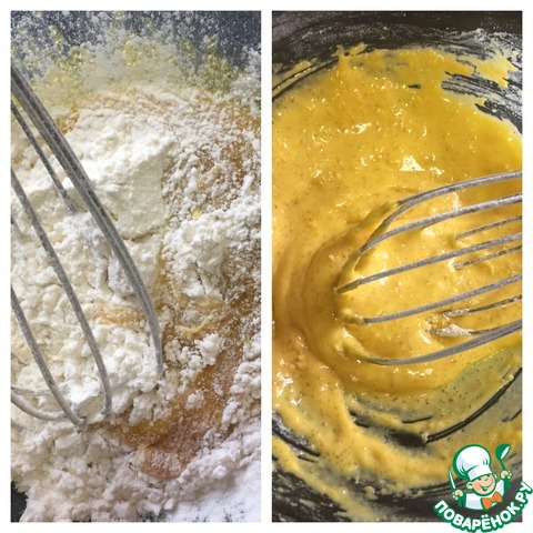И, добавляя понемногу, вмешиваем в желтковую массу.