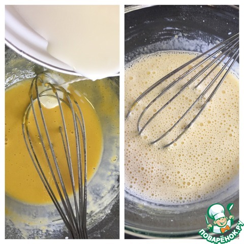 И, добавляя понемногу, вмешиваем в желтковую массу. |