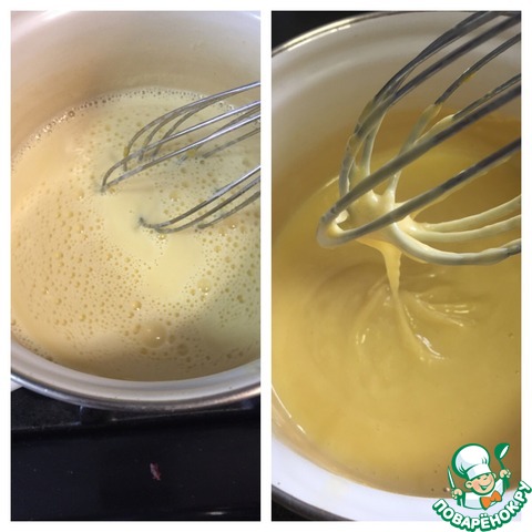Переливаем обратно в кастрюлю и, постоянно помешивая, готовим на слабом огне до легкого загустения. Около 2-3 минут. |