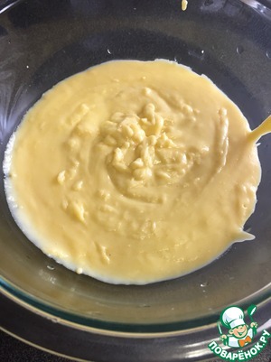 Затем переливаем обратно в миску и остужаем до комнатной температуры. Для быстроты можно накрыть пленкой и убрать в холодильник.