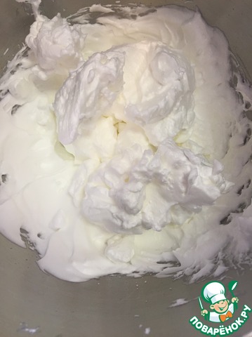 Белки взбиваем, постепенно добавляя сахар, до устойчивых пиков. Примерно 4-5 минут на высокой скорости. |