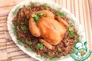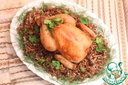 Курочка запечённая в духовке еще с детства ассоциируется у меня с праздником. В хрустящей корочке, под майонезной шапкой, в которую так вкусно макать хлеб, начиненная черносливом и яблоками или так любимой всеми нами гречкой... И в любом из множества вариантов она хороша! Сегодня нам с дочкой захотелось праздника и мы решили приготовить курочку фаршированную гречкой и опятами. Рецепт супер прост и также супер не нов.. но может быть наш вариант вам придется по душе? Попробуйте, это вкусно!