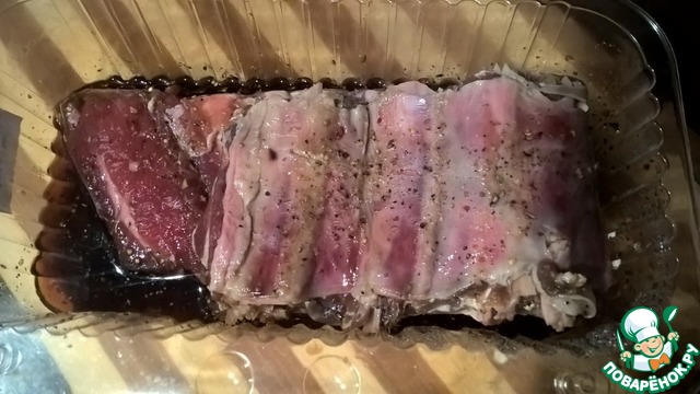 Залить водой, чтобы ребра были покрыты маринадом.