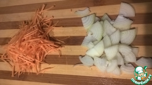 • Морковь и лук порезать соломкой