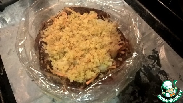 Наполнить крупой с овощами
