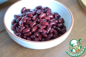 С фасоли слить сок (если у вас вареная фасоль, то слить воду, в которой она варилась).