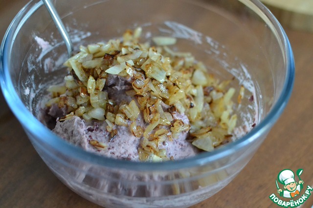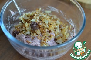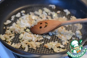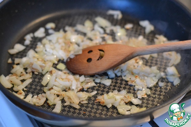 Лук мелко нарезать и обжарить на подсолнечном масле.