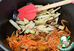 Влить оставшееся масло и жарить 5 минут, помешивая. -