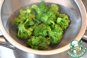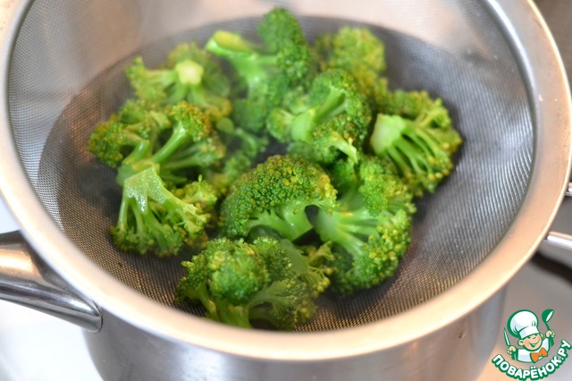 Брокколи разобрать на соцветия и отварить в подсоленной воде до готовности.