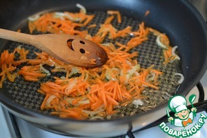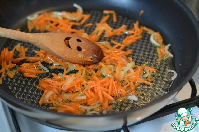 Лук нарезать на полукольца и обжарить на подсолнечном масле.