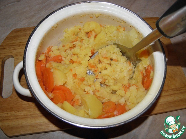 Пюре готово. Морковки и картофеля должно быть соотношение 1:2, т. е. на одну часть моркови 2 части картофеля