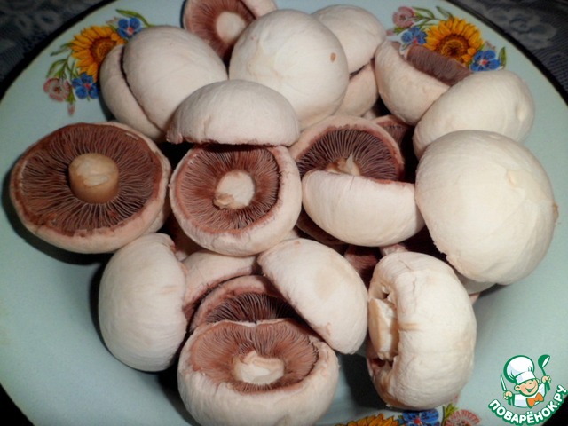 Шляпки почистить, ножки срезать, они пригодятся для другого блюда.