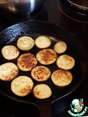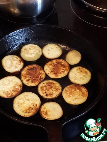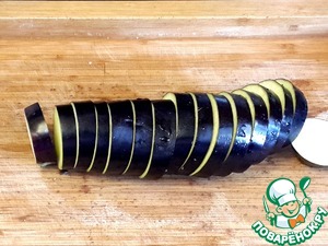 Баклажаны нарежьте кружочками по 0,5 см. Если кружочки в диаметре большие - их можно разрезать на половинки