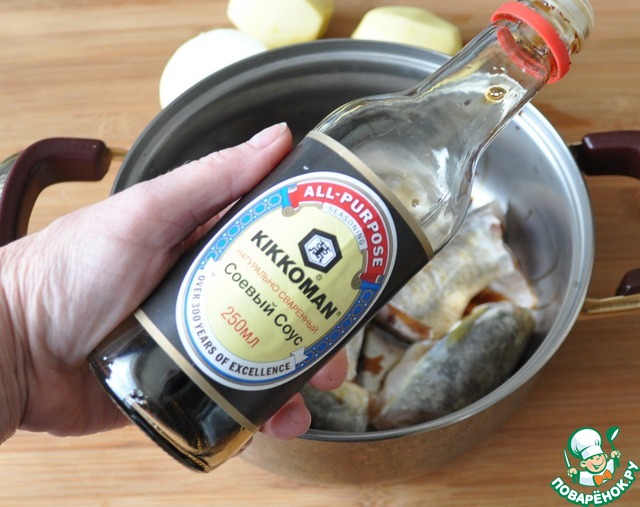 Поливаем рыбу соевым соусом, у меня ТМ Kikkoman.