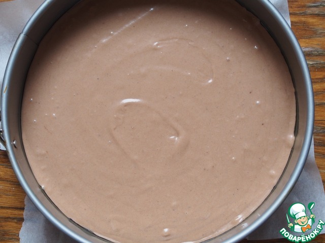 Форму застелить бумагой для выпечки, смазать растительным маслом (1 ст. л.) и выложить шоколадное тесто.