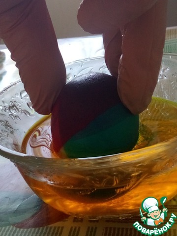 Можно оставить яйцо так, а можно как я опустить его еще в другой краситель. И получится примерно так.