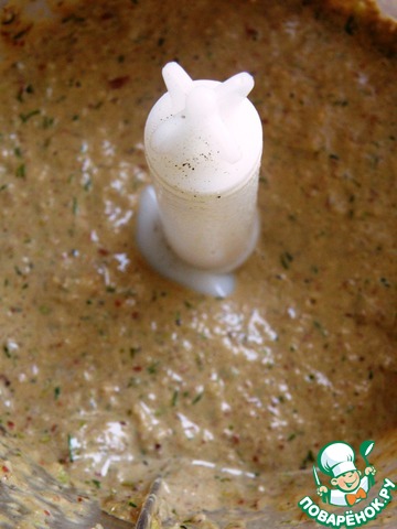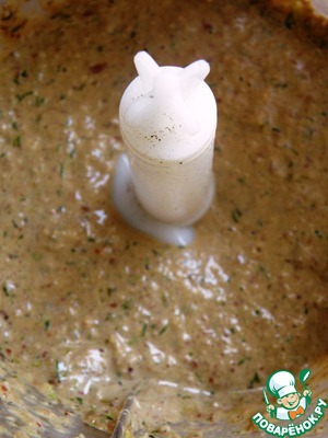 Влить масло и пробить до полной гладкости соуса. Отложить порцию для еды на раз и немного развести соус кипяченой водой по вкусу для удобства употребления. Оставшийся густой соус хранить закрытым в холодильнике пару дней. Можно использовать в качестве намазки на хлеб.