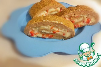 Аккуратно сворачиваем в рулеты. И перевязываем нитками или закалываем шпажками (кому как удобно), чтобы рулеты не разваливались.