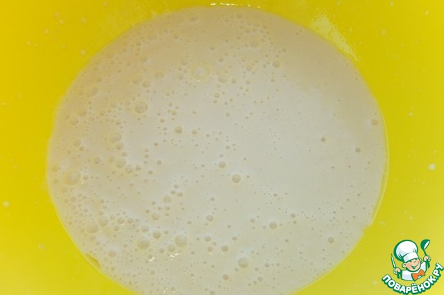 Кефир, 4 ст. л. сахара, растительное масло слегка взбиваем венчиком.