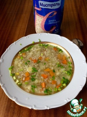 Суп легко готовить. используются в приготовлении перловая крупа и овощи.