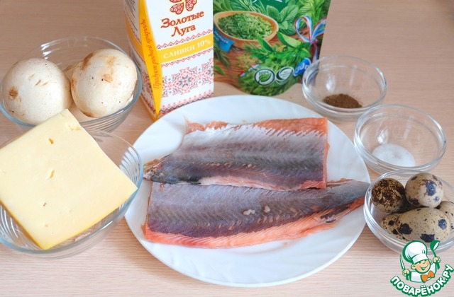 Ингредиенты для «Жюльен из горбуши с перепелиным яйцом»: