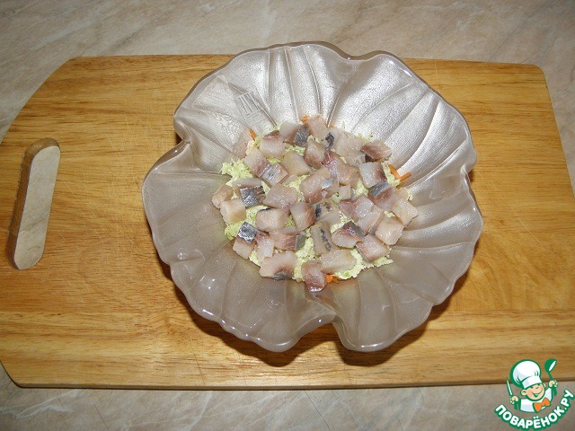 Третий слой селедка, без майонеза и специй