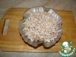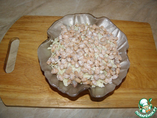 Пятый слой, фасоль, солим, перчим, смазываем майонезом