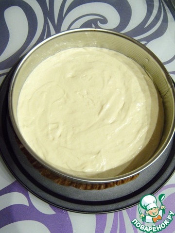 Вливаем готовое тесто в форму. Разравниваем лопаткой и несколько раз ударяем форму о стол, чтобы тесто равномерно распределилось по форме.