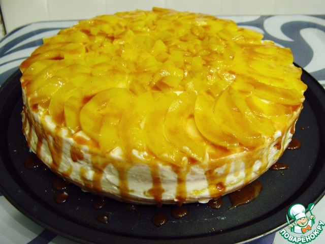 P.S. Старайтесь нарезать персики одинаковой толщины, иначе ваш торт будет не ровным, но от этого его вкус не испортиться, просто эстетически он уже не подойдёт для праздничного стола. -