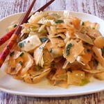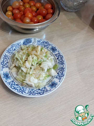 Капусту нарезать на кубики. Разделить руками на лепестки.
