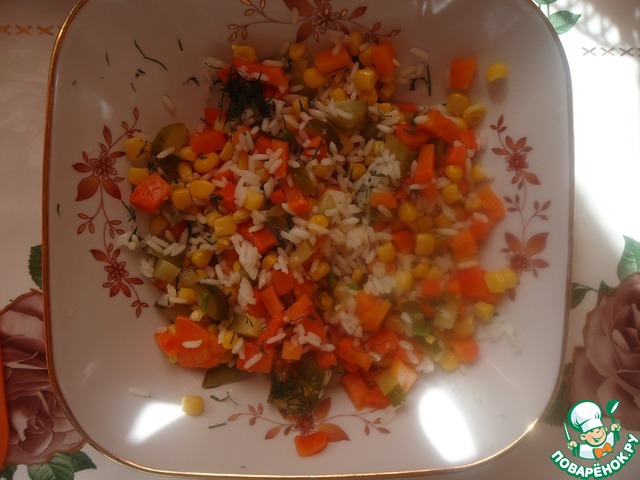 Салат с рисом и овощами- импровизация легкого постного салата. Продукты все просты и доступны.