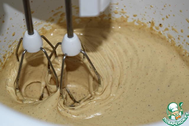 Желтки при взбивании должны увеличиться в три-четыре раза, а масса приобрести светло-кофейный цвет.