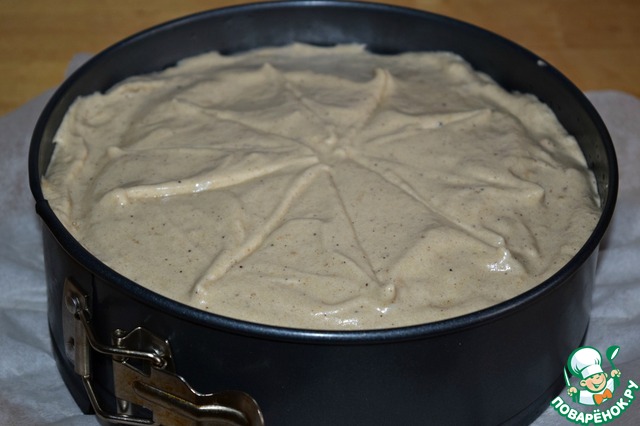 Дно формы для выпечки (диаметр 20 см) простелить пергаментом, смазанным растительным маслом. Бока формы смазывать НЕ НУЖНО, по ним тесто будет подниматься.